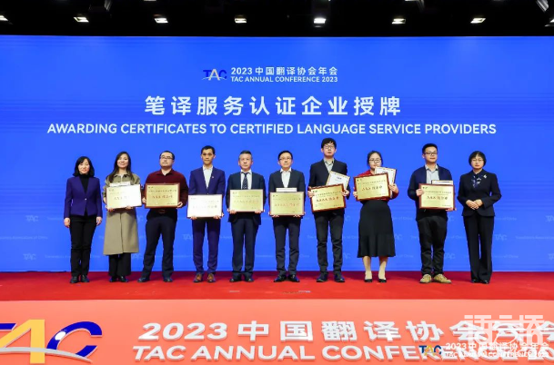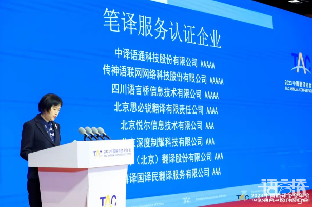 2023年4月3日,由中國外文局指導,中國翻譯協會主辦“2023中國翻譯協會年會”在北京國際會議中心開幕。會議期間發布了《2023中國翻譯及語言服務行業發展報告》《2023全球翻譯及語言服務行業發展報告》,并進行了翻譯服務認證企業授牌暨《口譯服務認證要求》發布。